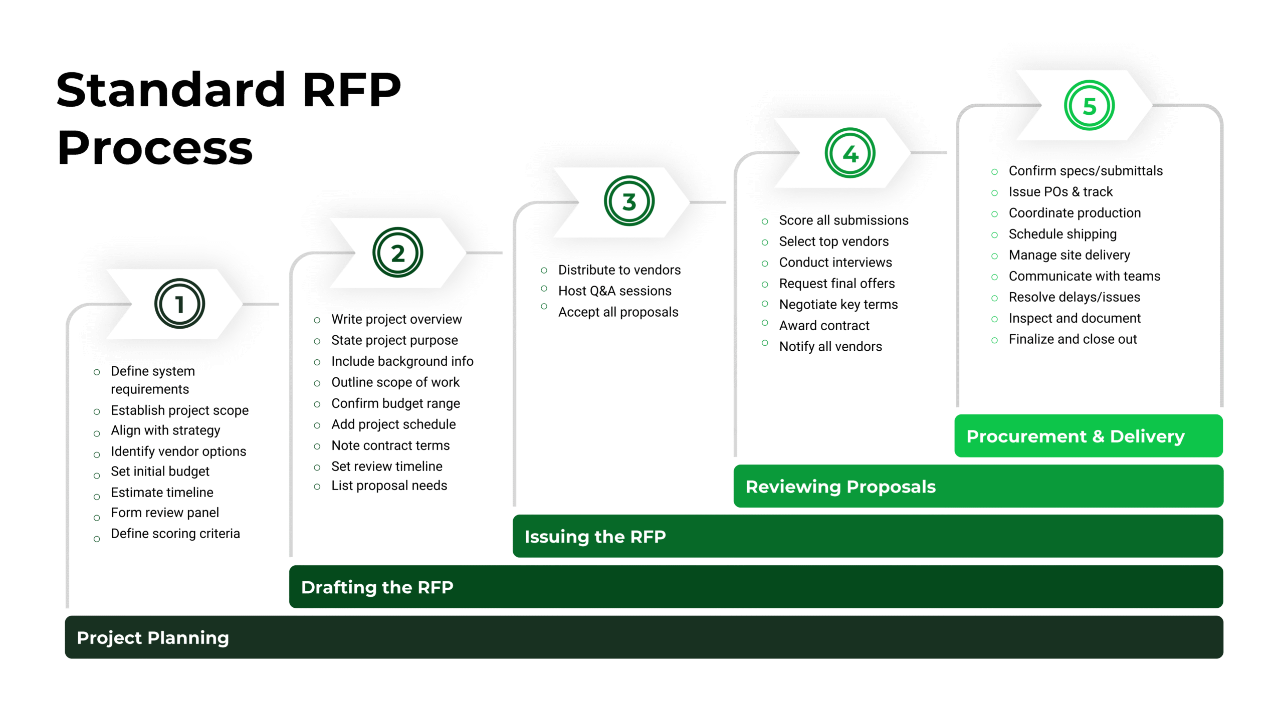 Build RFPs that match your facility’s exact needs — from professional services to major equipment — with or without consultant help.